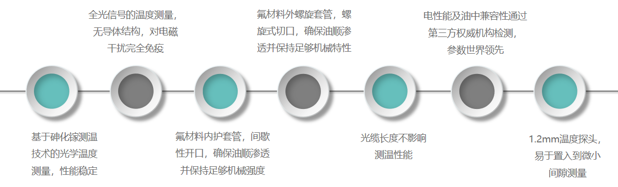 行業(yè)多年沉淀用于油浸變壓器內部熱點溫度的在線監(jiān)測;外護套采用PTFE螺旋外護套管,內部有PTFE間歇性開口式內護套管,使其浸入液體能滲透入護套管內,抗拉、抗震動性能優(yōu)異,傳感器主體采用開放式封裝,絕緣性能高,適配于真空干燥工藝,油浸環(huán)境。